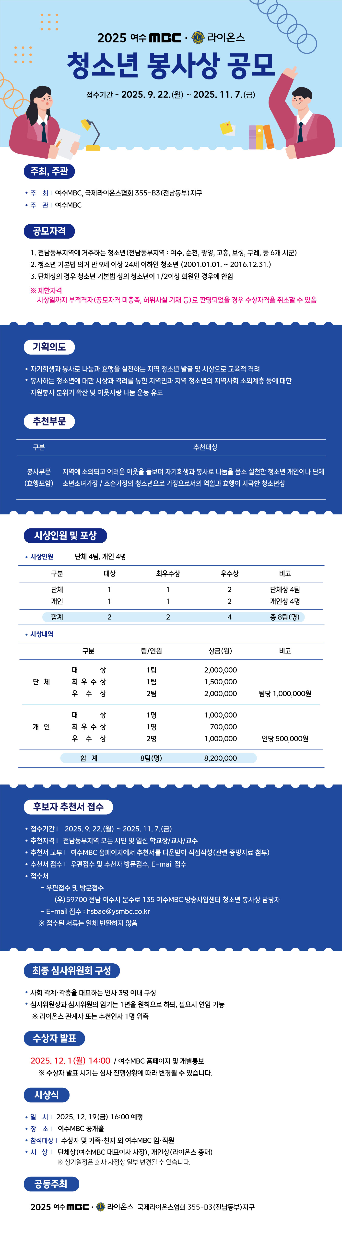 - 여수MBC 홈페이지에서 추천서를 다운받아 직접작성(관련 증빙자료 첨부)