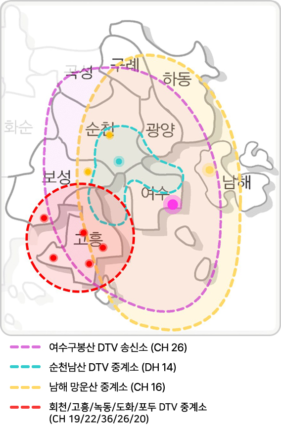 | 도화 간이중계소 | CH 26 | 20W | 일부 : 고흥 |