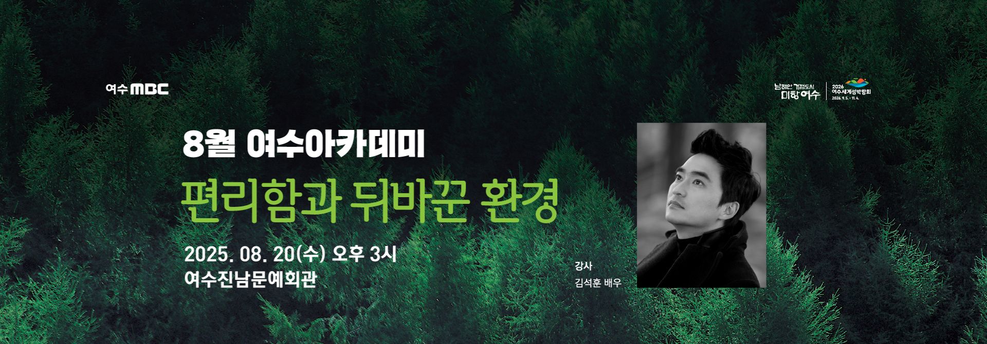 최신뉴스 '에너지를 바꾸는 시대' 새로운 바람을 맞이하려면.. ◀ 앵 커 ▶재생에너지 전환과 기후위기는 앞으로 우리 산업 전반에 큰 변화를예고하고 있습니다.거대한 에너지 전환의 흐름 속에서우리는 무엇을 알고 어떻게 준비해야 할지,전문가들이 제시하는 해법을 들... 뉴스데스크 106 글로벌 선진 석유화학 기업, 위기 ... 뉴스데스크 95 2인 선거구 확대?..."정치개혁 역행... 뉴스데스크 88 이 대통령의 관심‥지역방송 예산 부... 뉴스데스크 66 12/12 데스크 성금 뉴스데스크 59 더보기 주요뉴스 순천시 첫 민생회복지원금‥"빚 없이 마련" 뉴스데스크 1125 내일(8)부터 순천 전 시민 대상 민생회복지원금 20만원 지급 뉴스데스크 951 통합대학 교명 선정 눈앞‥국립김대중대학교 '글쎄' 뉴스데스크 542 주말 휴일 기간 여수 순천지역 사건사고 잇따라 5시 뉴스 459 여수)중국발 공급 과잉에 여수 직격탄...일본은 지금 뉴스데스크 271 내일(8)부터 순천 전 시민 대상 민생회복지원금 20만원 지급 5시 뉴스 270 관광지 개발한다더니.. 공무원 가족 알박기 뉴스데스크 263 이슈 현장)광양 모든 대학생에 장학금 지급될까 ..전국 첫 사례 뉴스데스크 257 제주항공 참사 1년 만에 조류충돌 위험 평가 지침 마련 뉴스데스크 203 공공 도서관 잔디밭에서 부상 전치 6주‥"전체 점검" 뉴스데스크 199 더보기 타임라인 전남 의대 전남 국립의대 설립 '연말·연초' 분수령 2주 전 지역의사 양성법안 국회 상임위 통과..전남의대 청신호 3주 전 "내년 1월까지 2개월"..27년 3월 전남의대 개교 분수령 1개월 전 전남 의대 실현되나..전국 유치전 속 정부 선택은? 1개월 전 신민호 도의원 "전남 국립의대 2027년 개교 촉구" 2개월 전 전남도, 복지부에 2027년 의대 신속 설립 촉구 2개월 전 전남의대 '신속 설립' 촉구...대학 통합은 '속도' 3개월 전 전남도의회, 2030년 국립의대 개교 계획 철회 촉구 3개월 전 "전남 통합대학교 국립의대 신속한 설립 촉구" 3개월 전 전남국립의대 27년 3월 개교 불가능..정부 2030년 3월 제시 3개월 전 prev next 더보기 TV 프로그램 prev next 섬마을 여행사 화 18시 40분 자그마치 365개의 섬을 보유하고 2026여수세계섬박람회를 개최하는 자타공인 섬의 도시, 여수. 여수의 섬을 여행하는 신박한 방법이 온다~! 섬마을 여행사 행운의 1호 고객, 대한외국인 레오 란타가 새로운 시선으... 트로트클라쓰 금 18시 05분 쇼의 클라쓰를 보여주다! TROT CLASS♡ 장르불문, 성별불문, 컨셉불문 트로트 대세 가수들의 다양한 매력에 빠져봅시다~ 유튜브 라이브와 TV, OTT를 통해, 펼치는 지상파 방송의 크로스미디어! 트로트클라쓰의 다양한... 어바웃 우리동네 수 18시 05분 지역의 생생한 현장, 알짜배기 여행 정보, 남도 미식, 독특한 공간 소개, 살아가는 이야기까지 다채롭게 펼쳐내는 매거진 프로그램.초밀착 초근접 우리동네 매거진. 어바웃 우리동네 📨 코너 소개 ‣ 양스타의 힙한 ... 여수MBC 토크쇼 뉴스&이슈 지역의 가장 뜨거운 현안 문제와 이슈를 현장 취재 기자나 관련 패널이 직접 출연 해 심도 있고 알기 쉽게 풀어내는 토론 프로그램 더보기 Radio 프로그램 prev next 더보기 문화행사 prev next 더보기 K-POP 콘서트 SF9(에스에프나인) - Don't Worry, Be Happy [SHOW CHAMPION in YEOSU] #kpop #k_music [K-POP콘서트] K-POP in 여수/순천/광양/고흥 케이팝콘서트 #KPOP #kpop_concert 권은비 - Underwater [SHOW CHAMPION in YEOSU] #kpop #k_music [K-POP콘서트] K-POP in 여수/순천/광양/고흥 케이팝콘서트 #KPOP #kpop_concert 권은비 - SABOTAGE [SHOW CHAMPION in YEOSU] #kpop #k_music [K-POP콘서트] K-POP in 여수/순천/광양/고흥 케이팝콘서트 #KPOP #kpop_concert 이채연 - Don't [SHOW CHAMPION in YEOSU] #kpop #k_music [K-POP콘서트] K-POP in 여수/순천/광양/고흥 케이팝콘서트 #KPOP #kpop_concert 이채연 - Summer Heat [SHOW CHAMPION in YEOSU] #kpop #k_music [K-POP콘서트] K-POP in 여수/순천/광양/고흥 케이팝콘서트 #KPOP #kpop_concert EPEX(이펙스) - 청춘에게(Youth2Youth) SHOW CHAMPION in YEOSU] #kpop #k_music [K-POP콘서트] K-POP in 여수/순천/광양/고흥 케이팝콘서트 #KPOP #kpop_concert EPEX(이펙스) - 여우가 시집가는 날 [SHOW CHAMPION in YEOSU] #kpop #k_music [K-POP콘서트] K-POP in 여수/순천/광양/고흥 케이팝콘서트 #KPOP #kpop_concert NMIXX(엔믹스) - 별별별 [SHOW CHAMPION in YEOSU] #kpop #k_music [K-POP콘서트] K-POP in 여수/순천/광양/고흥 케이팝콘서트 #KPOP #kpop_concert prev next 2026 여수섬박람회 여수에 반할 만도 (2부) 묘도 섬달천 여자도 [2026 여수세계섬박람회 특별기획] 2025.10.6. 여수MBC 방송/... [2026 여수섬박람회 특별기획] 섬, 여수 Korea Island, Yeosu 여수에 반할 만도 (1부) 두라도 화태도 횡간도 [2026 여수세계섬박람회 특별기획] 2025.10.6. 여수MBC 방송... [2026 여수섬박람회 특별기획] 섬, 여수 Korea Island, Yeosu [섬, 여수 - 조발도] 365개의 섬이 알알이 수놓인 아름다운 물길 여수 [2026여수섬박람회 특별기획] Korea ... [2026 여수섬박람회 특별기획] 섬, 여수 Korea Island, Yeosu [섬, 여수 - 제도] 365개 여수의 섬들이 간직해 온 특별한 이야기! 가고 싶은 섬, 여수 제도 [2026여수섬박... [2026 여수섬박람회 특별기획] 섬, 여수 Korea Island, Yeosu [섬, 여수 - 개도] 365개 여수의 섬들이 간직해 온 특별한 이야기! 가고 싶은 섬, 여수 개도 [2026여수섬박... [202