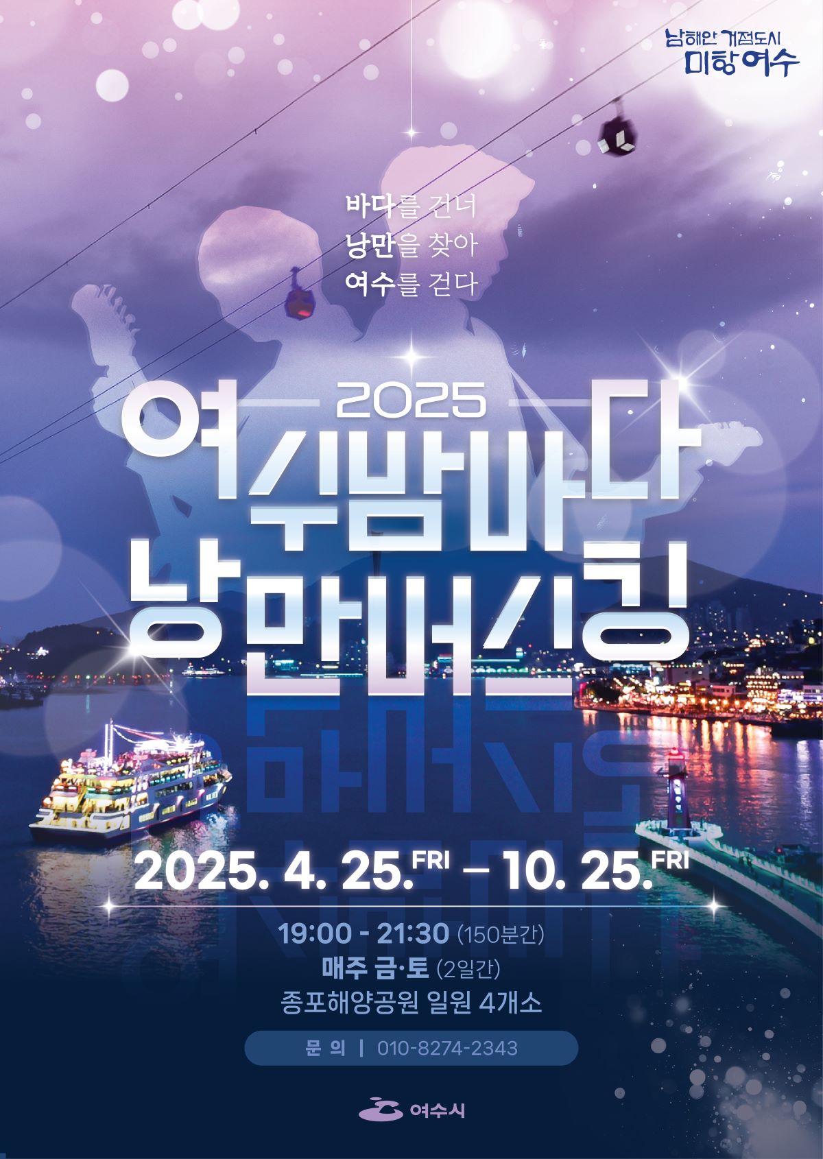여수MBC행사 여수밤바다 낭만버스킹 일시 2025. 4. 25 ~ 10. 25. 매주 금 토 19:00~21:30(150분간) 장소 종포해양공원 일원 4개소 홈페이지 낭만버스킹 목록으로