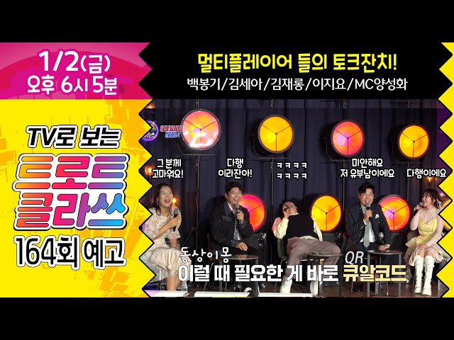 [트로트 클라쓰 164회 예고] 멀티플레이어 클라쓰1~ 백봉기/김세아/김재롱/이지요/MC양성화 1/2(금) 오후 6시5분~ #트로트클라쓰 #trotclass tv