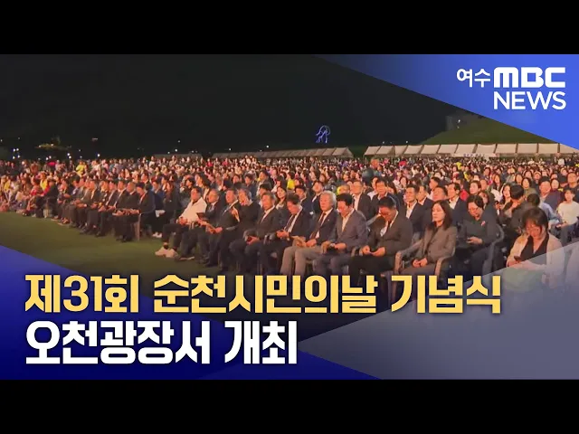 제31회 순천시민의 날 기념 행사가오늘(15) 오천그린광장 일대에서 열렸습니다.이번 행사는 지역 사회의 화합과 단결을 다짐하고, 순천의 발전을 기념하기 위한다채로운 공연과 체험 프로그램이 마련된 가운데 1, 2부로 나눠 진행됐습니다.기념식에서는 민선 5기 때자매 결연을 맺은 일본 이즈미시의시이노키 신이치 시장이...
