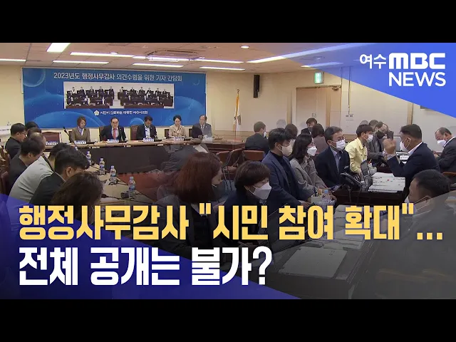 ◀ 앵 커 ▶ 여수시의회가 여수시 행정 전반을 점검하는 행정사무감사에 들어갑니다. 올해 처음으로 시민들이 제보한 내용을 감사에 활용하는 등 변화를 꾀하는 모습이지만, 전체 일정 가운데 일부만 공개하는 방식을 고수하면서 적지 않은 비판을 받고 있습니다. 문형철 기자입니다. ◀ 리포트 ▶ 여수시의회가 이달 말까지 의...