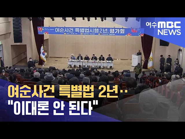 ◀ 앵 커 ▶여순사건의 진상을 밝히고희생자 명예회복을 위해 제정된 여순사건 특별법이 시행 2년을 맞았습니다. 기대 속 법이 시행됐지만, 규명 작업에 속도가 붙지 않고 있는데요.최근 진상조사보고서 작성기획단을 둘러싼논란까지 불거지며 우려가 커지고 있습니다.유민호 기자입니다.◀ 리포트 ▶우여곡절 끝에 지난 2021...