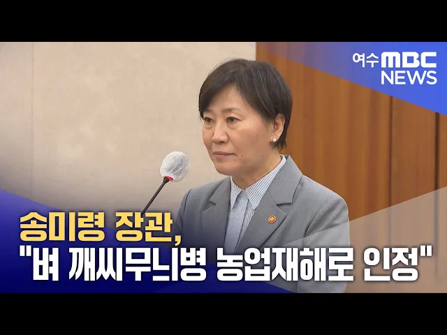 송미령 농림축산식품부 장관이이상고온 등으로 발생한 벼 깨씨무늬병을농업재해로 인정하고 피해조사를 실시해재난지원금을 지급하겠다고 밝혔습니다. 송 장관은 오늘(14) 국회 농림축산식품해양수산위원회 국정감사에서벼 병해로 인한 농업인의 어려움을 감안해 피해 벼를 전량 매입하고 복구비를 신속히 지원하는 등 농...