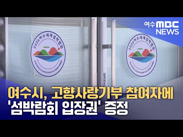 여수시가 10월 한 달 동안고향사랑기부제 참여자를 대상으로특별 이벤트를 진행합니다.여수시는 10만 원 이상을 기부한 선착순 3백 명에게 답례품과는 별도로 여수세계섬박람회 입장권을 증정한다고 밝혔습니다.입장권은 이벤트가 끝난 뒤순차적으로 발송될 예정이며,고향사랑이음 홈페이지에서 기부를 완료한 뒤신청서를 ...