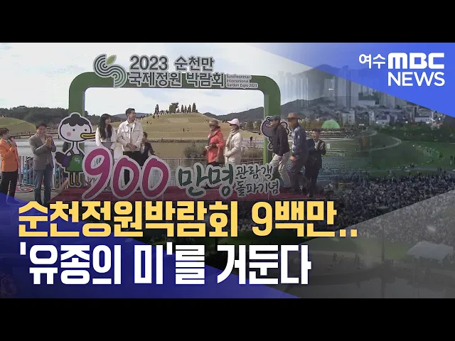 ◀ 앵 커 ▶ 순천만국제정원박람회의 막바지 흥행 열기가 뜨겁습니다. 지난 주말 관람객 900만명을 달성한데 이어 천만을 향해 달리는 중 인데요. 조직위는 박람회의 대미를 장식할 마지막 빅 이벤트, 폐막식까지 성공 개최해 유종의 미를 거둔다는 계획입니다. 김주희 기자가 보도합니다. ◀ END ▶ ◀ 리포트 ▶ 지난 22일, 순...