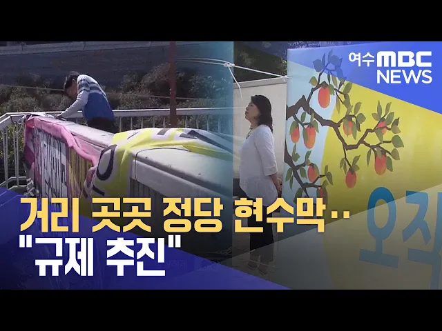 ◀ 앵 커 ▶ 내년 총선이 다가오면서 거리 곳곳에서는 각 정당이 내건 현수막을 흔히 찾아볼 수 있는데요. 누가 우리 지역을 위해 일하는지 알 수 있어 긍정적이란 반응도 있지만, 남발된 현수막이 운전과 보행에 방해를 줘 규제해야 한다는 목소리도 나옵니다. 유민호 기자입니다. ◀ 리포트 ▶ 순천시 장평로 남부시장 4거리....