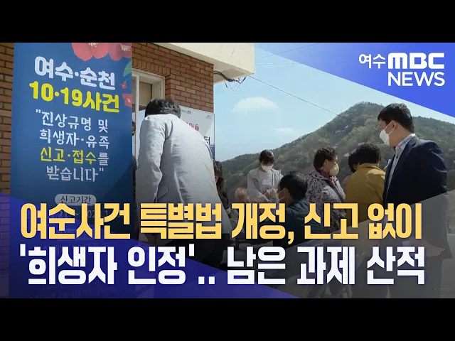 ◀ANC▶ 여순사건 특별법이 개정돼 1천 2백여 명이 별도의 절차를 거치지 않고 여순사건 희생자로 인정받을 수 있는 길이 열렸습니다. 하지만, 철저한 진상 규명과 신속한 명예회복을 위해서는 제도 개선과 충분한 예산 확보가 필요합니다. 문형철 기자입니다. ◀VCR▶ 과거사 진상규명을 위해 2005년부터 2010년까지 운...