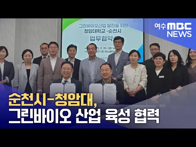 순천시와 청암대학교가그린바이오 산업 육성과 인재 양성을 위해 노력하기로 했습니다.양측은 최근 업무협약을 맺고기업 유치와 현장 실습형 인재 양성,실무 중심 교육과정 운영 등다양한 분야에서 협력할 계획입니다.이번 협약은 지역혁신중심 대학지원, 라이즈 사업의 목적으로 이뤄졌으며, 청암대는 내년 '그린바이오산...