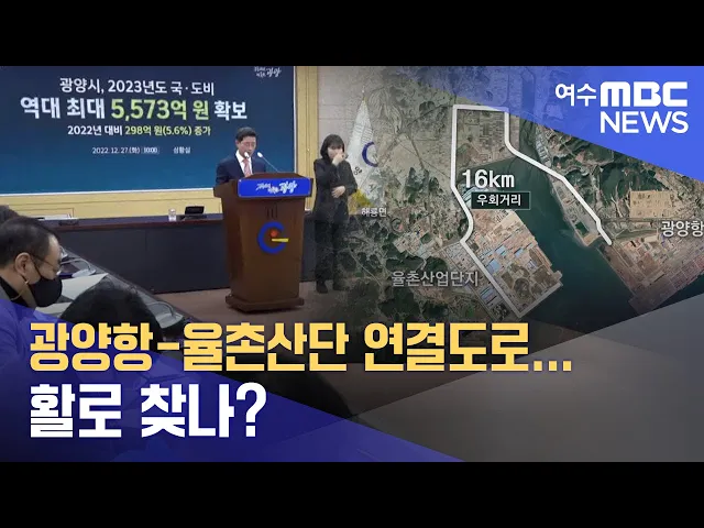 ◀ANC▶ 광양항과 율촌산단을 연결하는 도로 건설이 추진됐지만, 경제성이 낮다는 이유로 사업이 표류하고 있었는데요. 사전 타당성 조사를 위한 예산이 극적으로 내년 정부 예산에 반영되면서 활로를 찾을 수 있을지 주목됩니다. 문형철 기자입니다. ◀VCR▶ 지난 2019년부터 추진된 광양항과 율촌산단 간 연결도로 개설...