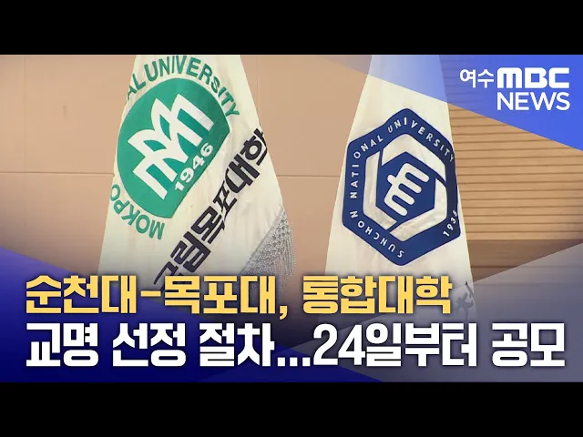 대학 통합을 추진하고 있는 순천대와 목포대가 새로운 교명 선정 절차에 들어갑니다.두 대학은 오는 24일부터 다음 달 10일까지 전 국민을 대상으로 통합대학 교명 공모를 진행한 뒤교명선정위원회와 대학통합 공동추진위원회 심의를 거쳐 교명안 4개를 선정할 계획입니다.이후 대학 전체 구성원을 대상으로 투표를 진행해1...