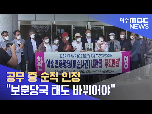 ◀ANC▶ 여순사건 당시 철도 기관사로 근무하다 무고하게 희생된 故 장환봉씨가 지난 5월 순직 공무원으로 인정받았습니다. 이를 계기로 다른 희생자 유족들도 잇따라 순직 신청을 준비하고 있는데요. 보훈당국의 태도 변화가 필요하다는 지적이 나오고 있습니다. 문형철 기자입니다. ◀VCR▶ 지난 2020년, 여순사건 재심...