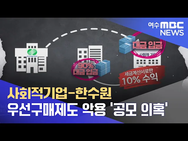 ◀ANC▶ 보조금 부정수급과 노동착취 의혹을 받고 있는 한 사회적기업이 공공기관 우선구매제도를 악용해 부당한 이익을 취했다는 주장이 나왔습니다. 해당 기업이 한국수력원자력과 중간 딜러를 통해 거래한 내용이 확인됐는데, 실제로는 한수원에 납품도 하지 않고 세금계산서만 발행한 뒤 부당 수익을 챙겨 온 의혹이 ...