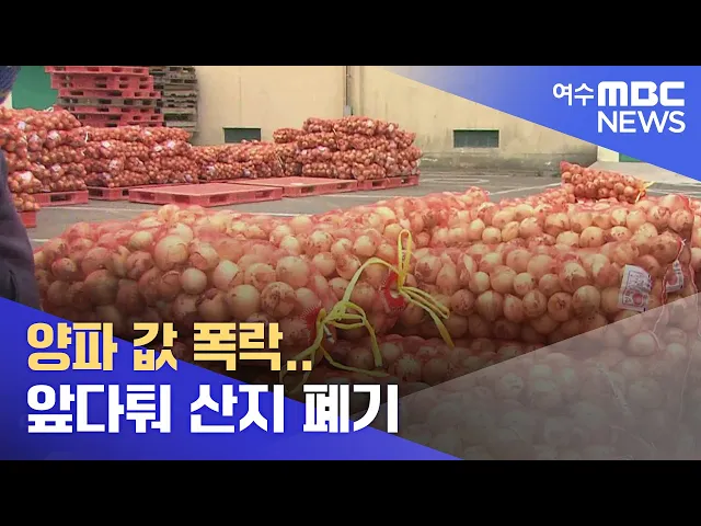 ◀ANC▶ 양파 가격이 폭락하면서 수확을 앞둔 조생종 햇양파들이 출하되지 못하고 있습니다. 생산 원가라도 건지려는 농민들은 애써 기른 양파들을 울며 겨자먹기로 폐기하고 있습니다. 강서영 기자입니다. ◀VCR▶ 수확을 앞둔 조생종 양파가 트랙터 바퀴에 힘없이 갈려나갑니다. 양파값 폭락으로 제 값을 받을 수 없다 ...