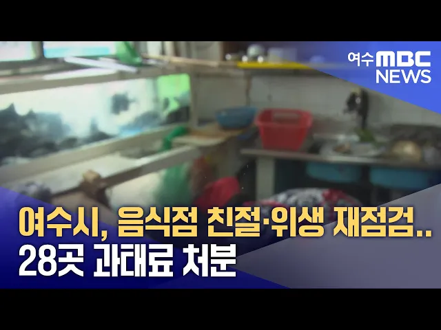 여수시의 개선 명령을 따르지 않은 음식점 20여 곳이과태료 처분을 받았습니다. 여수시는 개선 명령을 내린 음식점 1천 3백여 곳에 대해 현장 재점검을 벌인 결과28곳의 업소에서 위생 불량과건강진단 미실시 등이 적발됐다고 밝혔습니다.여수시는 해당 업소에 대해 과태료 처분을 내리는 한편, '중점 관리 등급제'를 도입...