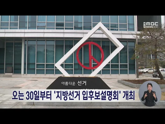 오는 6월 3일 치러지는제9회 전국동시지방선거와 관련한입후보 설명회가 이달 말부터 다음 달 10일까지 진행됩니다.전남동부권에서는 오는 30일 광양, 다음 달 5일 여수, 6일 순천, 10일 고흥 순으로 설명회가 열립니다.선거관리위원회는예비후보자 선거운동 방법과정치자금 회계처리,예비후보 등록 서류 등을 안내할 예정...