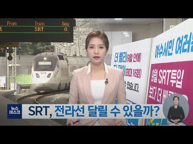 ◀ANC▶추석 전까지 전라선에 투입될 예정이었던 SRT 열차의정비가 지연되면서 앞으로의 운행 계획이 불투명해진 것으로 드러났습니다.그간 SRT 투입을 반대해온 철도노조가 반발하기 시작하면서 논란이 일고 있습니다.강서영 기자입니다. ◀VCR▶추석 전까지 전라선에 SRT를 투입하려던 계획은정치권을 중심으로 확실시...