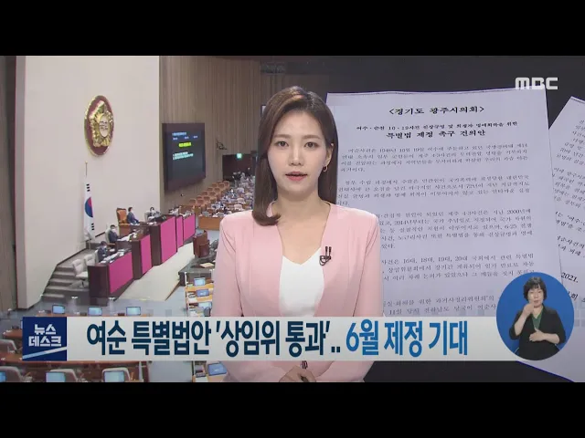 ◀ANC▶여순사건 특별법안이 국회에 발의된 지 11개월 만에오늘(16) 상임위원회를 통과했습니다. 유족들과 지역사회, 정치권까지 일제히 환영의 뜻을 밝혔는데요. 6월 임시국회에서 본회의까지 통과할 수 있을지관심이 모아지고 있습니다. 문형철 기자입니다. ◀VCR▶지난달 상임위원회 안건이 포함되지 못했던 여순사건...