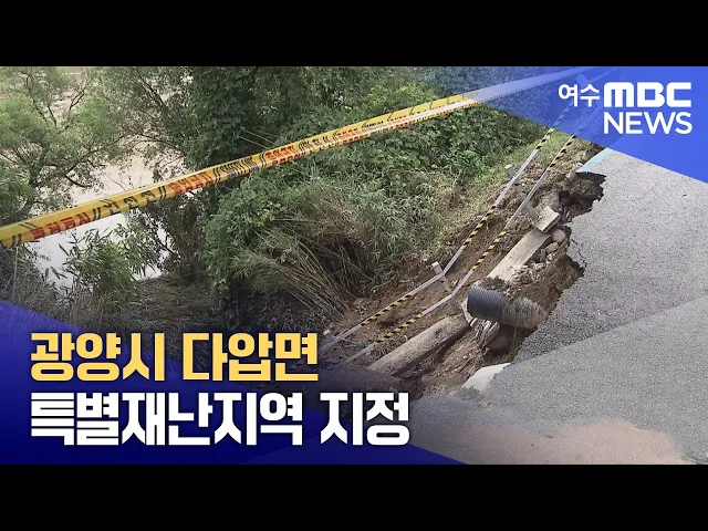 광양시 다압면 일원이 특별재난지역으로 지정돼복구사업에 탄력을 받을 수 있을 전망입니다. 광양시는 지난 달 16일 부터 나흘동안 이어진 515mm에 이르는 집중호우로 242건 48억 여원의 재산 피해가 발생한 다압면 일원에 대해 특별재난지역으로 새롭게 지정 선포됐다고 밝혔습니다.시는 이번 특별재난지역 지정에 따라 피...