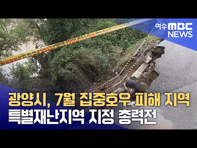 광양시가 지난 달 집중 호우로 발생한 피해에 대한 조속한 복구를 위해 총력을 기울이고 있습니다.광양시는 지난 달 16일부터 나흘동안 평균 270mm의 강우량을 기록한 집중호우로 모두 45건, 46억 원 규모의 피해가 발생한 것으로 집계됐으며, 다압면 지역 등 피해가 집중된 지역과 우심 지역에 대한 특별재난지역 지정을 ...