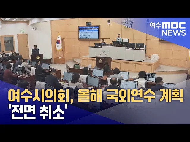 여수시의회가 올해 국외연수 계획을 전면 취소했습니다.여수시의회는 오늘(30) 개최할 예정이었던 '공무국외출장 제도개선 간담회'를 취소하고, 올해 연수계획 자체를백지화했습니다.여수시의회는 강화된 연수 기준을 충족하기 어렵고,최근 불거진 의원간 폭력 사태와 관련해 의회 스스로 자중하는 차원에서 이같이 결정했...