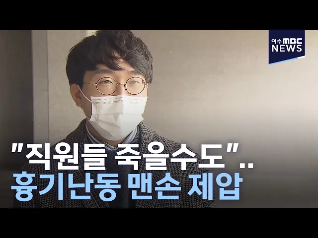 ◀ANC▶지난 주말, 전남 여수의 한 주민센터에서 만취한 민원인이 흉기를 들고 난동을 벌이는 사건이 발생했습니다.공무원들이 여러명 다칠수 있는 아찔한 상황이었는데요. 공무원 한명이 대담하게 민원인을 제압한 장면이 영상에 포착됐습니다. 강서영 기자입니다. ◀VCR▶지난 일요일 오후 2시 50분쯤, 전남 여수시 동...