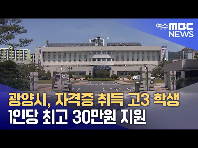 광양시가 자격증 취득한 고 3학생에 대해 1인당 최대 30만 원을 지원합니다.광양시가 고등학교 3학년 학생들이 졸업 전까지 의미 있는 학교 생활을 이어가고, 원활한 사회 진출을 준비할 수 있도록 운전면허증, 컴퓨터 관련 국가자격증 등 각종 자격증을 취득할 경우 1인당 최대 30만 원까지 지원합니다.이를 위해 시는 시...