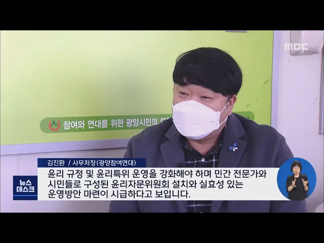 ◀ANC▶코로나19 상황 속에 광양시의원들이 단체식사를 하면서 방역수칙 위반 논란이 불거졌죠. 결국 과태료가 부과됐는데요. 이들의 사과가 부족하다는 지적과 함께 징계를 내릴 수 있는 의회 내 윤리위원회 구성도 힘들어 제도 개선 요구까지 이어지고 있습니다. 김종수 기자가 보도합니다. ◀VCR▶//////////////////...
