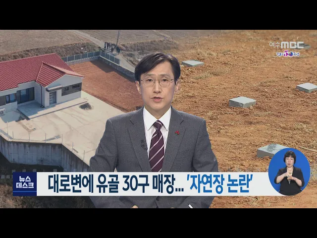 ◀ANC▶유골 수 십 구가 묻힌 장소를매일 바라보고 지나다녀야 한다면 어떨까요?여수에서는 한 일가가 대로변에 장지를 조성한 뒤 일가친척 30여 구의 유골을 묻어놔 인근 주민들의 불만과 민원이 발생하고 있습니다.어떤 사정인지 강서영 기자가 취재했습니다. ◀VCR▶여수시 소라면 대로변에 위치한 한 건물. 마당이 ...