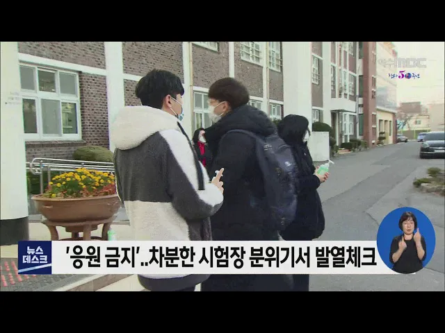 ◀ANC▶//조마조마 했던 코로나 감염병 위기 속에서지역에서도 대학수학능력시험이 비교적 순조롭게 마무리 됐습니다. 추운 날씨속에 어느 한순간도 맘을 놓을수 없었던 오늘 수능 풍경을 강서영 기자가 담아봤습니다.// ◀VCR▶2021학년도 수능시험날 아침, 시험장 앞은 여느때보다 차분했습니다.코로나19로 교문 앞 응...