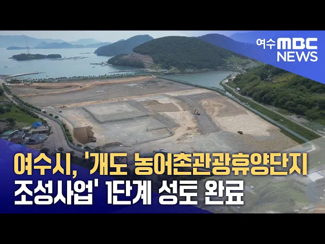 여수시가 화정면 개도 간척지 일원에서 추진하는농어촌관광휴양단지 조성사업의 1단계 성토공사가 완료됐습니다.여수시는 2026여수세계섬박람회 부행사장 조성과농어촌 관광 인프라 구축을 위해317억 원의 예산으로 전체 부지 15만7천여 ㎡ 가운데 우선 1단게로 6만 ㎡를 먼저 완공했다고 밝혔습니다.이번 1단계 부지에는섬...