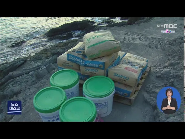 ◀ANC▶지역의 경관 명소인 여수 돌산지역의 갯바위 일부가 시멘트 포장으로 뒤덮인 볼썽 사나운 현장이 카메라에 잡혔습니다. 한 펜션업체가 태풍피해를 복구한다며 신고도 하지않고 저지른 일인데요. 이 업체측은 얼마전 산림 훼손으로 물의를 일으킨 곳과 동일한 업체였습니다. 사정이 이런데도 여수시는 아직 별다른 ...