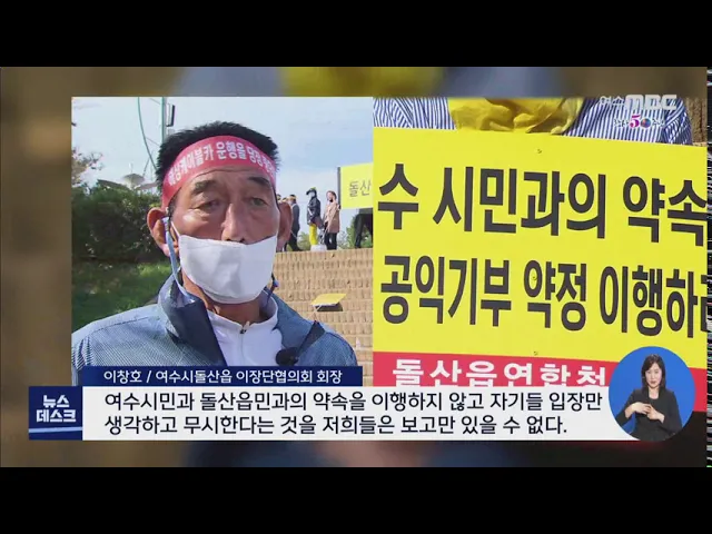 1. 여수해상케이블카가 지역에 납부를 하지 않고 있는 공익 기부금이 22억원으로 불어났습니다. 장학재단설립 약속도 지지부진한 가운데 인근 주민들이 약속이행을 요구하며 단식투쟁에 들어갔습니다. ◀SYN▶ "이행하라. 이행하라. 이행하라" ------------------------------- 2. 순천에서도 전시민 재난지원금 지원을 둘...