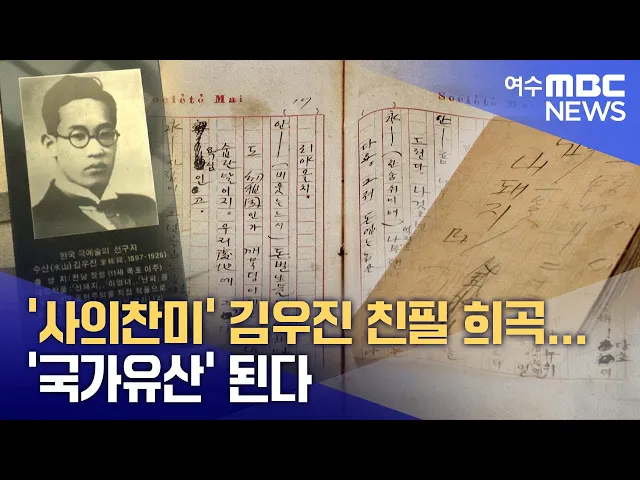◀ 앵 커 ▶일본 신파극이 유행하던 1920년주체적으로 서구 근대극을 받아들인한국 극대극의 창시자, 김우진은윤심덕과의 비극적 사랑 이야기로도대중에게 잘 알려져 있는데요.광복 80주년을 맞는 올해,일제강점기 목포에서 활동하며 발표됐던 김우진의 친필 희곡 원고들이 국가등록문화재로 지정됩니다.서일영 기자가 취재했...