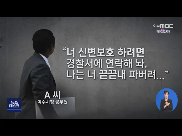 1. 시립 도서관내 갑질로 홍역을 치렀던 여수시청 공직사회가 민원인에 대한 욕설과 협박 파문으로 또다시 몸살을 앓고 있습니다. ◀SYN▶ "너 신변보호 하려면 경찰서에 연락해 놔. 나는 너 끝끝내 파버려..." 코로나 사태속 공무원의 부적절한 골프 회동으로 군청사가 폐쇄되기까지 하는 등 도내 공무원들의 기강해이가 ...