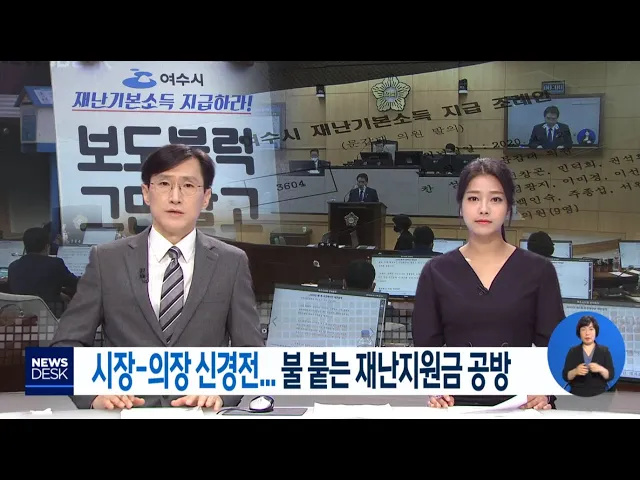 ◀ANC▶코로나 사태가 장기화 하고 있는 가운데여수시의 추경예산안 심사가 시작되면서,여수형 재난지원금 지급을 둘러싼 공방이다시 불거지고 있습니다. 시장과 의장이 정례회 개회식부터신경전을 벌인 가운데,새롭게 발의된 재난지원금 관련 조례안은오늘(3) 상임위원회를 통과했습니다. 시민단체들은 끝까지 지급을 요...
