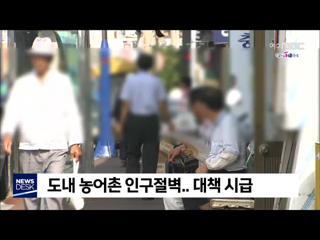◀ANC▶전남 농어촌지역의 인구절벽은 현안을 넘어 대책 마련이 절박한 상황입니다.농어촌지역 국회의원들은 정부의 특단의 대책과 일자리 창출의 필요성을 지적하고 있습니다.박민주기자입니다. ◀END▶고흥군의 고령화율은 40%,전국적인 인구 소멸 위험지역 가운데 하나입니다.이같은 상황은 전남 농어촌지역 대부분이...