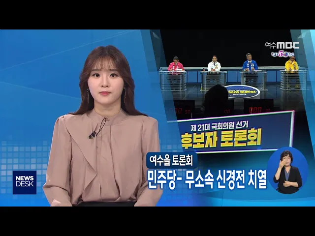 1) 21대 국회의원 선거 사전 투표가 시작됐습니다. 사전 투표 첫날, 코로나 19 여파속에서도 지역 투표율이 역대 사전 투표 가운데 가장 높은 것으로 나타났습니다. /////////////////////////////////////////// 2) 여수을 선거구 총선 후보자 토론회가 열렸습니다. 출마한 4명의 후보들은 지역 발전을 위한 다양한 공약을...