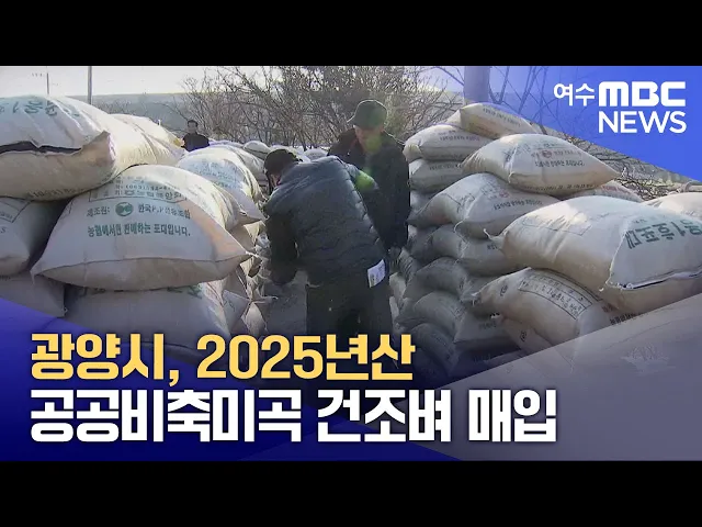 광양시가 2025년산 공공비축미곡 건조벼 매입에 착수했습니다.광양시는 지난 달 1일 부터 26일 까지 산물벼 490여 톤을 매입 완료한 데 이어 오늘(19) 부터 오는 27일 까지 읍·면·동 별 지정 장소에서 2025년산 공공비축미곡 건조벼 771톤에 대한 매입에 들어갔습니다.시는 이번 공공비축미곡 건조벼 매입 대금이 수매 직후...