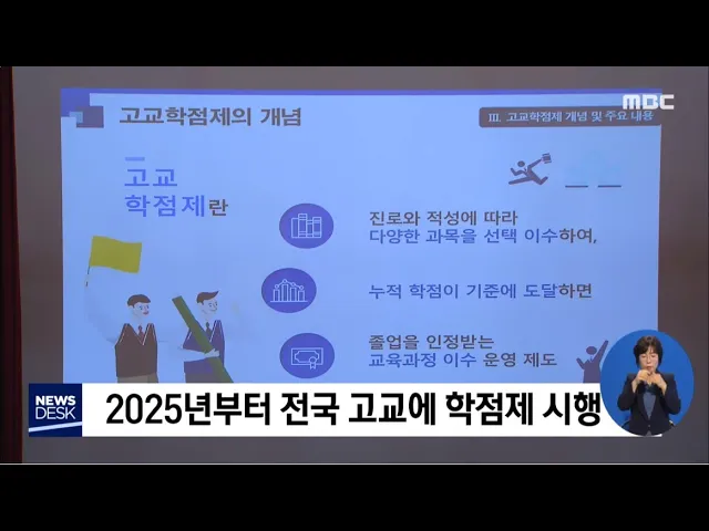 ◀ANC▶2025년부터 달라지는 교육 정책이 많습니다. 그중 하나가 특목고를 없애고, 일반고의 교육력을 강화하기 위해 학점제를 도입한다는 겁니다. 대학교처럼 고등학생들도 원하는 과목을 선택해 수업을 들을 수 있도록 한다는 건데, 인프라가 부족한 지역에서는 우려의 목소리도 큽니다. 조희원 기자입니다. ◀VCR▶고...