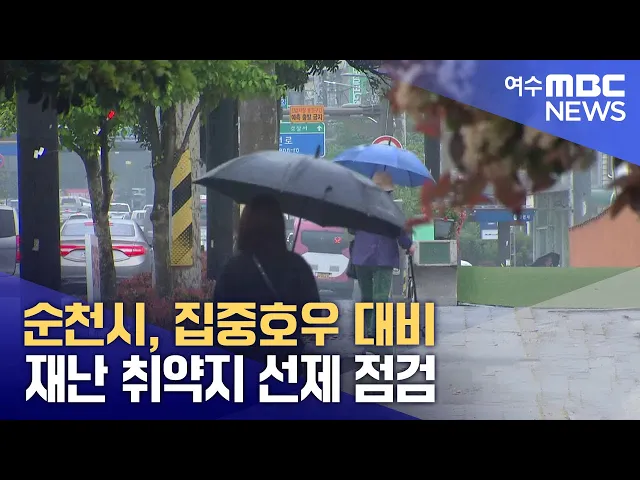 순천시가 오늘(16) 오후부터시 전역에 최대 100mm의많은 비가 내릴 것으로 예보됐다며재난 취약지역 점검에 나섰습니다.순천시는 집중호우에 대비해하천과 산사태 우려 지역 사전 예찰을 강화하고배수 펌프장 작동과 주민 사전 대피 계획 등을 점검했다고 밝혔습니다.또, 침수 위험이 큰 지하차도를 중점 관리 대상으로 지...