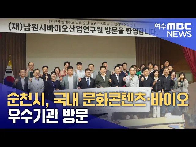 순천시가 3대 전략 산업 중문화콘텐츠와 바이오 산업의 국내 우수 사례를 찾아 나섭니다.순천시는 오늘(16)부터 이틀간 서울시와 전북 남원, 경기 부천 등주요 선진 기관을 방문하고 정책 아이디어 발굴을 추진한다고 밝혔습니다.이번 방문으로 바이오 제품 개발과 사업화,콘텐츠 생태계 조성 방안 등을 분석해시 관련 사업...