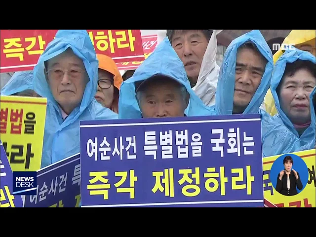 ㅔ ◀ANC▶ 최근 여순사건 특별법안의 상임 소관위원회가 국방위에서 행정안전위로 이관됐습니다. 이런 가운데 전남동부지역 유가족들이 지난달에 이어 국회를 찾아 특별법 제정을 거듭 촉구했습니다. 강서영 기자입니다. ◀VCR▶ 비가 오는 궂은 날씨에도 전남동부지역 여순사건 유족들이 국회 앞에 섰습니다. ◀SYN▶ ...