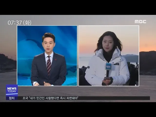 네, 2019년의 첫 해가 지금 이 시각 떠오르고 있습니다. 현장에 취재기자가 나가 있는데요, 조희원 기자, 지금 상황 어떻습니까? ◀VCR▶네, 제가 나와 있는 이곳은 전남의 해돋이 명소 중 한 곳으로 꼽히는 여수 오동도의 전망대입니다. 이곳에는 제 뒤로 보시는 것처럼 지금 이 시각 기해년 첫 해가 수면 위...