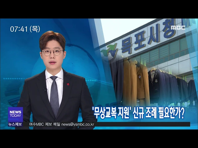 내년도 중학교 무상교복 시행을 놓고목포시와 목포시의회가 힘겨루기를 하고있습니다.의회는 본 예산에 편성해 신학기부터 사업을진행하자는 반면 목포시는 관련 근거가 없다며난색을 표하고 있습니다.김양훈 기자가 취재했습니다. ◀END▶순천시는 내년도 본예산에중학교 무상교복 사업 예산을 편성했습니다.예...