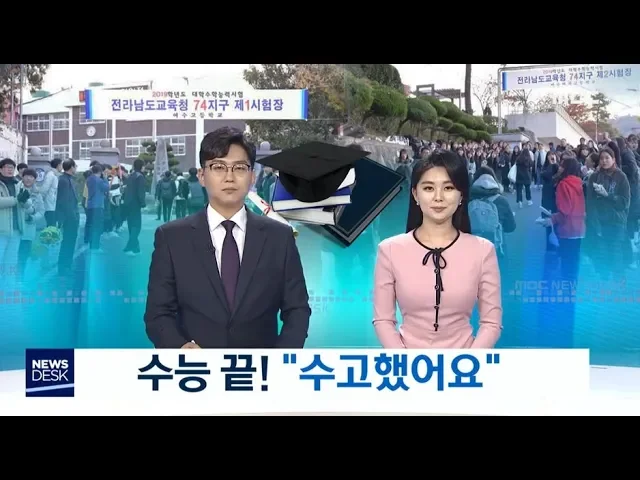 [현장 St-Up]네, 입실 시간이 다가오면서 수험생들이 하나 둘씩 입실을 하고 있습니다.입김이 나올 정도로 쌀쌀한 날씨인데요, 선배들의 선전을 기원하는 후배들의 열띤 응원으로 수험장 앞은 후끈한 열기가 느껴집니다. ◀VCR▶오늘(14) 전남도에서는 47곳의 시험장에서 만 7천7백여 명의 수험생들이 수능시험을 봅니다. ...