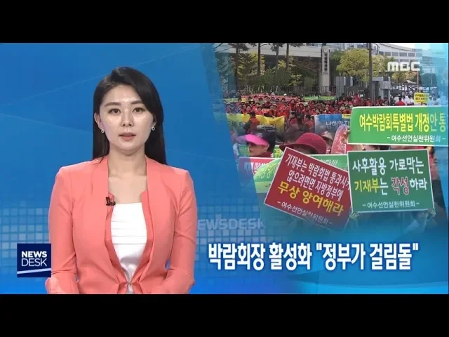 여수세계박람회장 활성화를 위한 특별법 개정안이 정부 반대에 부딪혀 표류할 기미를 보이고 있습니다. 청소년 해양교육원 착공은 이미 늦어졌고,국립해양기상과학관 유치마저 수포로 돌아갈 것이라는 우려가 큽니다. 보도에 문형철 기자입니다. ◀VCR▶ 4백 명이 넘는 여수지역 시민들이 정부세종청사 앞에 모였습니다. ...