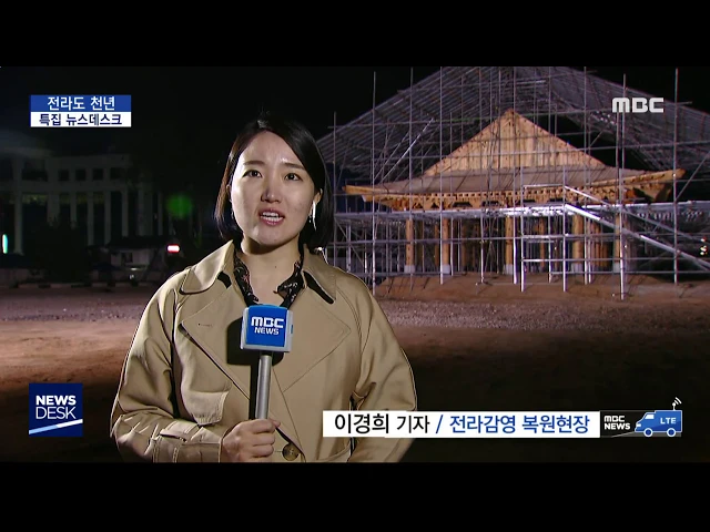 전주는 조선시대 호남과 제주까지 다스렸던 전라감영이 있던 곳입니다. 오늘 이곳에서 전라도 천년 기념식과 문화행사도 열렸는데요. 전라감영 복원 현장에 나가 있는 취재 기자 연결해서 자세한 내용 들어보겠습니다. 이경희 기자 나와주시죠. ◀END▶ ◀VCR▶ 네, 저는 지금 전라감영 선화당 복...