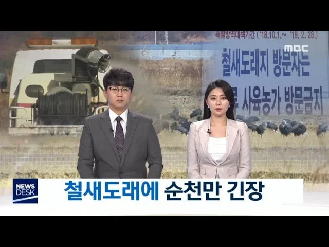 본격적인 철새 도래시기에 맞춰 순천만의 조류 인플루엔자 예방활동이 강화되고 있습니다.지난해 폐쇄조치로 지역경제가 나쁜 영향을 받았던 만큼 순천시도 대책 마련에 분주해졌습니다.김종수 기자가 보도합니다. ◀VCR▶최근 경남 창녕에서 채취한 조류 분변에서 AI 바이러스가 검출돼 지자체마다 비상이 걸렸...